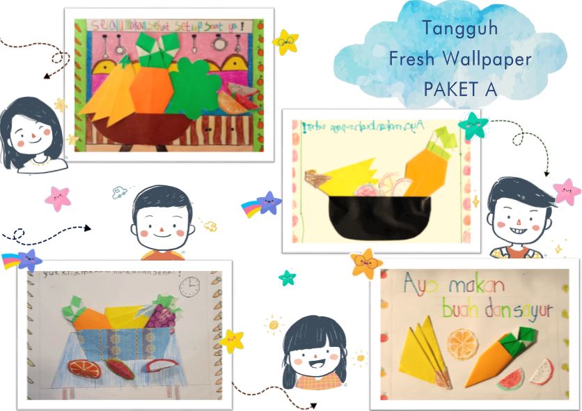 Tangguh Fresh Wallpaper adalah kreasi seni origami anak yang didigitalkan. Ada pilihan paket wallpaper yang bisa kamu pilih sesuai keinginanmu. Dalam produk ini, juga ditambahkan kalimat yang berisi pesan singkat yang mengajak kamu untuk selalu hidup sehat dengan makan sayur dan buah . Pilih dan segarkan tampilan gadgetmu sekarang!